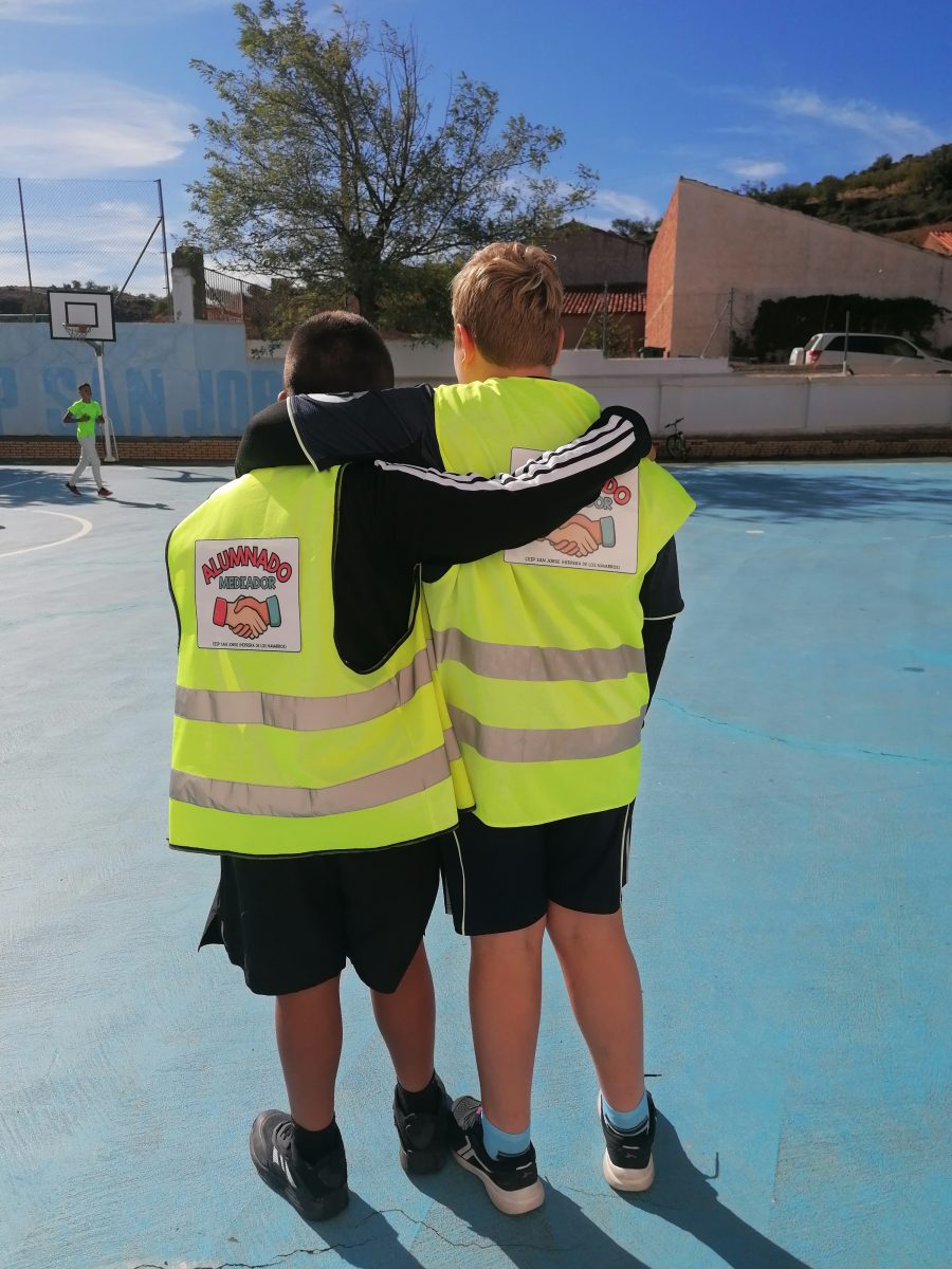 El alumnado ayudante es un grupo de alumnos y alumnas que, con la orientación del profesorado, ayudan a fomentar el buen clima en el patio. Su función principal es escuchar, acompañar y mediar cuando surgen pequeños conflictos, siempre desde el respeto y el diálogo.