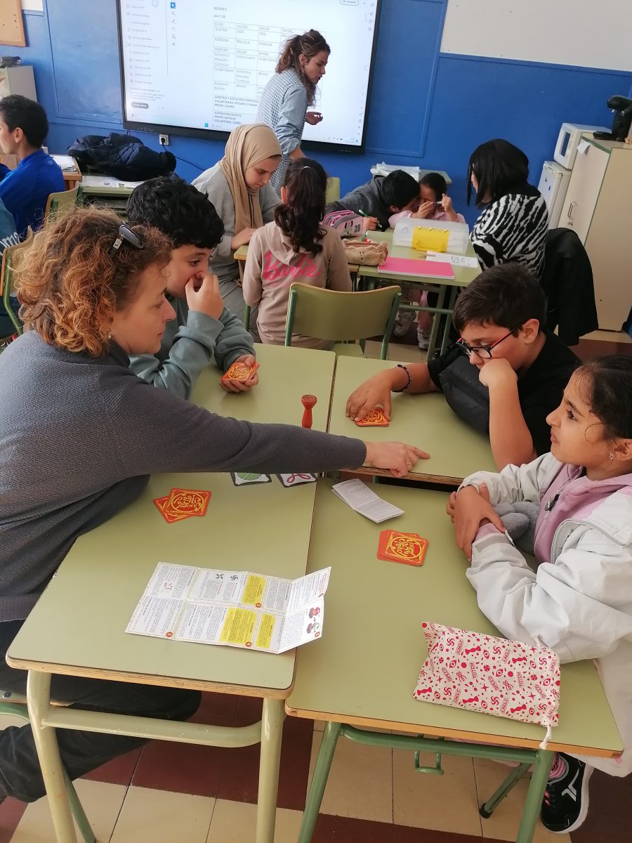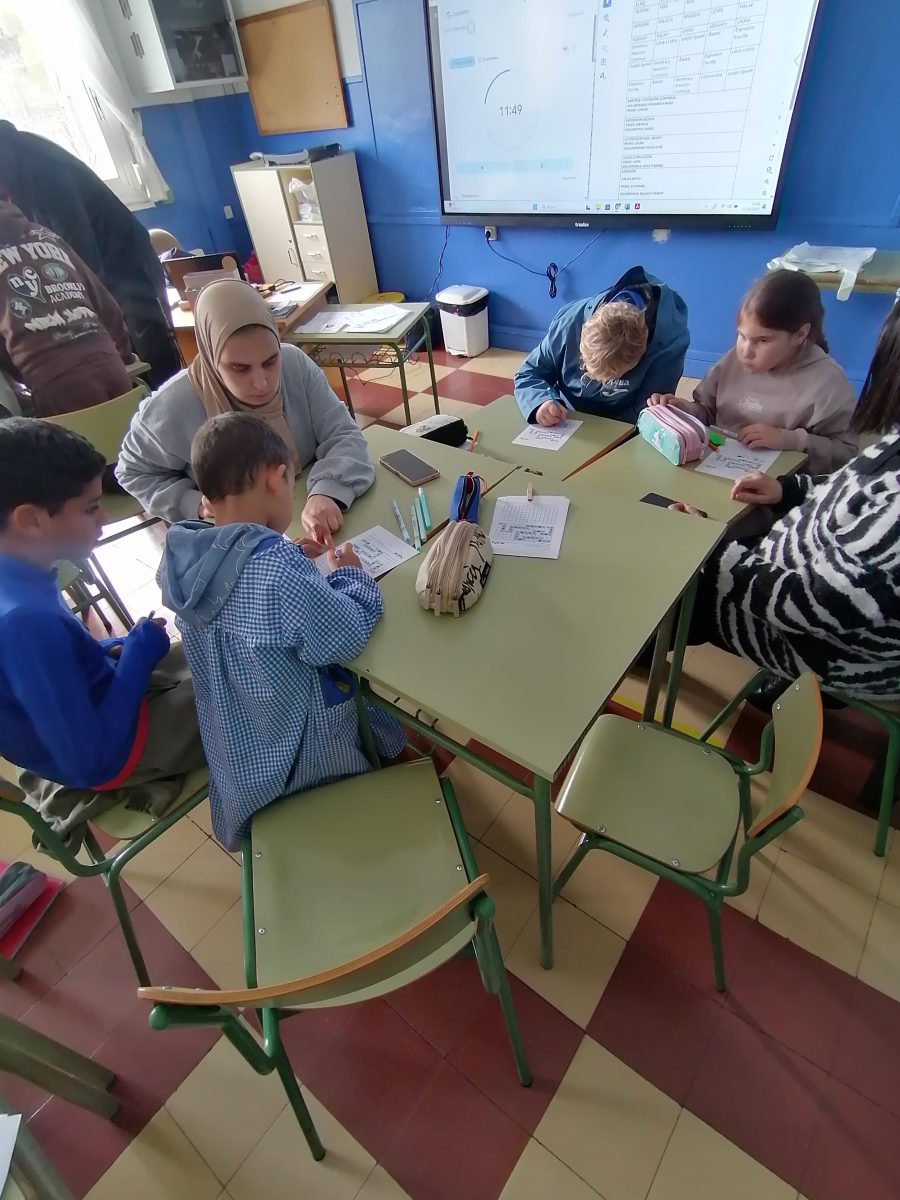 Otra de nuestras actuaciones son los Grupos Interactivos, una dinámica que permite ofrecer una atención más personalizada al alumnado. Al aumentar el número de personas adultas en el aula —voluntarias del pueblo y familias del propio centro— conseguimos multiplicar el tiempo efectivo de aprendizaje.
